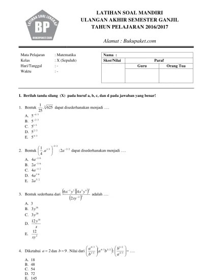Soal uas matematika kelas 10 semester 2 kurikulum 2013 smk.